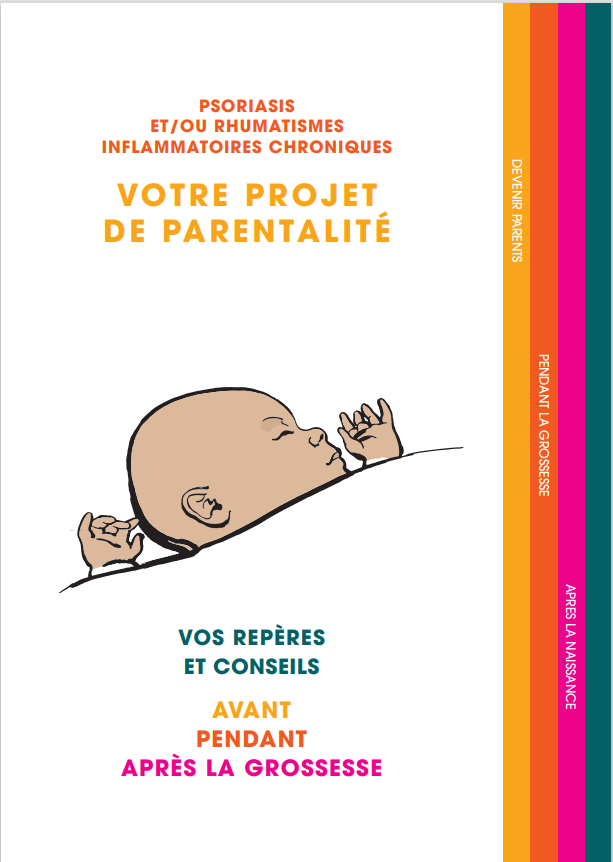 Devenir parent avec une maladie chronique, c’est possible. Cette brochure vous guide si vous avez un psoriasis ou un rhumatisme inflammatoire chronique et que vous souhaitez avoir un enfant. Elle vous aide à préparer votre projet, à poser vos questions aux soignants et à être bien accompagné(e) à chaque étape.